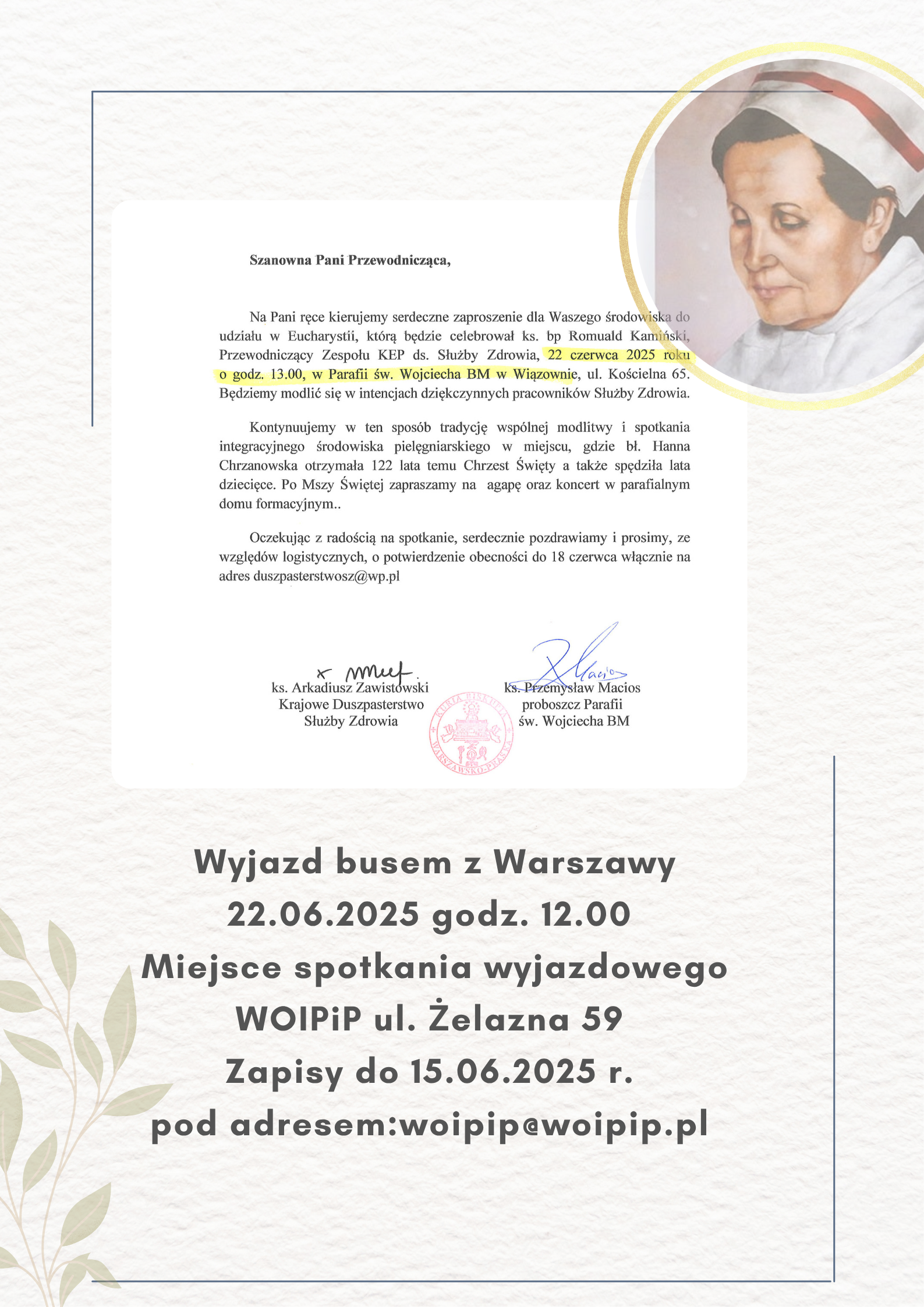 22.06.2025 Wiązowna wyjazd msza